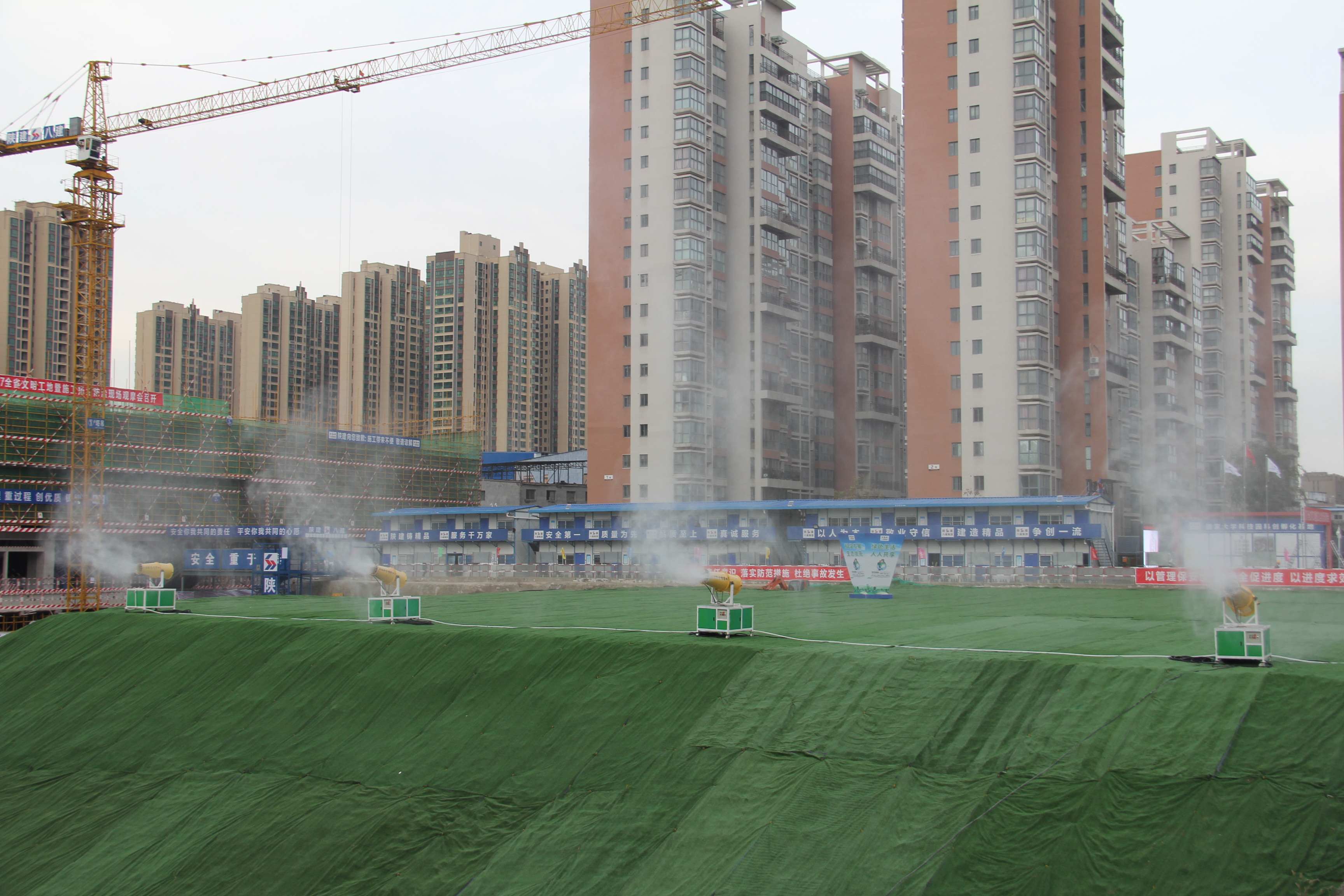 根據(jù)活動(dòng)安排,大家先后參觀了兩個(gè)項(xiàng)目的辦公區(qū)、生活區(qū)和生產(chǎn)區(qū)。其中,陜西建工第八建設(shè)集團(tuán)有限公司國(guó)家科技園孵化器基地項(xiàng)目的高壓降塵噴霧系統(tǒng)、基坑和道路雙向噴淋系統(tǒng)、工具式隔音墻、圍墻垂直綠化、活動(dòng)房屋面雨水回收系統(tǒng)、三級(jí)沉淀池、紅外三聯(lián)動(dòng)洗車臺(tái)、LED燈帶、BIM深化設(shè)計(jì)、VR安全教育體驗(yàn)等施工亮點(diǎn)突出,大家一邊聽(tīng)講解員的講解,一邊用手機(jī)拍攝現(xiàn)場(chǎng)圖片,有的還親自體驗(yàn)了VR安全教育,充分領(lǐng)略了現(xiàn)代化科技在工程建筑方面的先進(jìn)成果。據(jù)介紹,該項(xiàng)目綠色施工方面成績(jī)斐然,榮獲了西安市雁塔區(qū)“治污減霾樣板工地”稱號(hào)。緊接著,大家還對(duì)陜西建工第二建設(shè)集團(tuán)有限公司新開(kāi)門(mén)南路市政工程的智慧工地管理平臺(tái)、BIM技術(shù)、聯(lián)網(wǎng)式自動(dòng)噴淋系統(tǒng)、太陽(yáng)能平板集熱洗浴系統(tǒng)、環(huán)保遠(yuǎn)程門(mén)禁監(jiān)控系統(tǒng)等一系列新型技術(shù)進(jìn)行了觀摩學(xué)習(xí)。