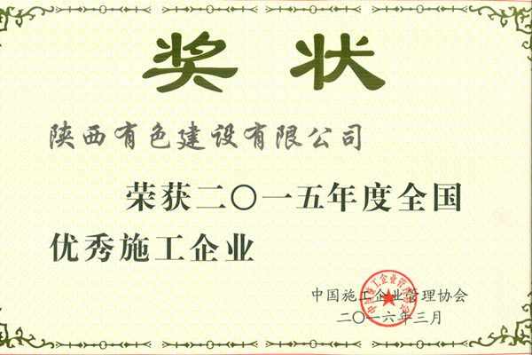 日前,中國施工企業(yè)管理協(xié)會(huì)授予公司“2015年度全國優(yōu)秀施工企業(yè)稱號(hào)”。