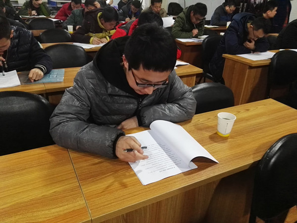 上午九點競賽正式開始。參賽人員拿到題后,細心瀏覽并作答,現(xiàn)場答題氛圍安靜嚴肅。據(jù)悉,此次競賽題目分為兩類,分別是土建和安裝專業(yè),由施工方案競賽評選領導小組出題。通過對現(xiàn)場答題職工的采訪,他們認為此次競賽的題量適中,題目有深度,雖然按照書本知識能夠答完,但是要結合安全文明施工、綠色施工、優(yōu)質結構和新技術示范創(chuàng)建等要求,答題標準就必須提升檔次,不再局限于答完,更要求答好、答精。公司也據(jù)此為參賽人員留夠充足的答題時間,讓他們認真思考,耐心作答。